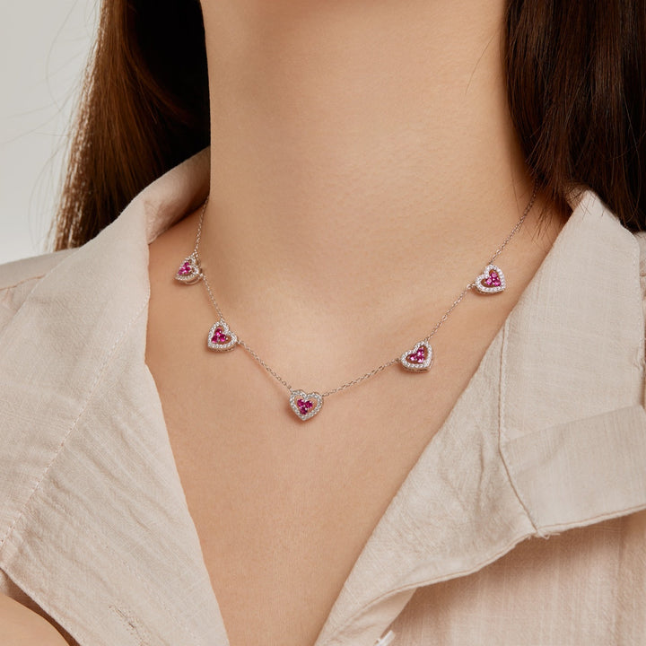 [STREET]Sparkling Five Heart Necklace