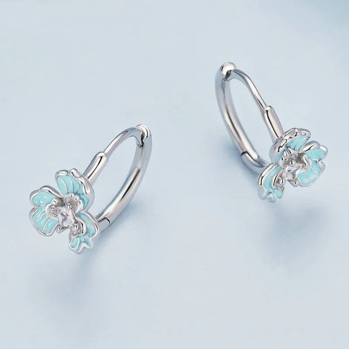 [STREET]Blue Enamel Iris Ear Buckles Flower Hoop Earrings