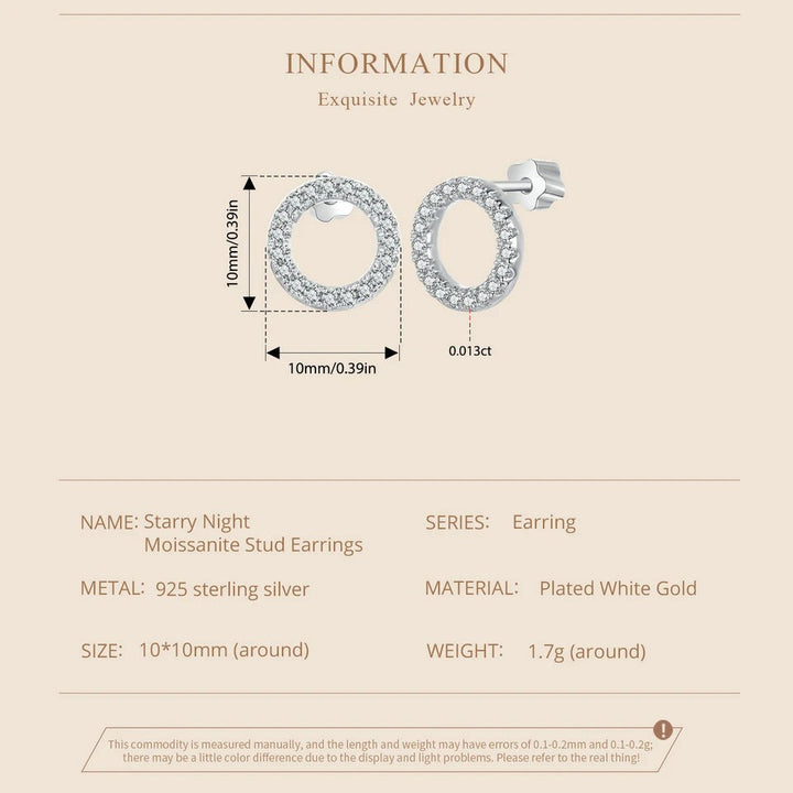 ? [Description] The classic full-set round mossanite stud earrings like sparkling stars dancing in the night sky, emit a captivating and dazzling glow. They outline a luxurious and noble temperament as shining brightly, allowing you to radiate unique charm on any occasion.