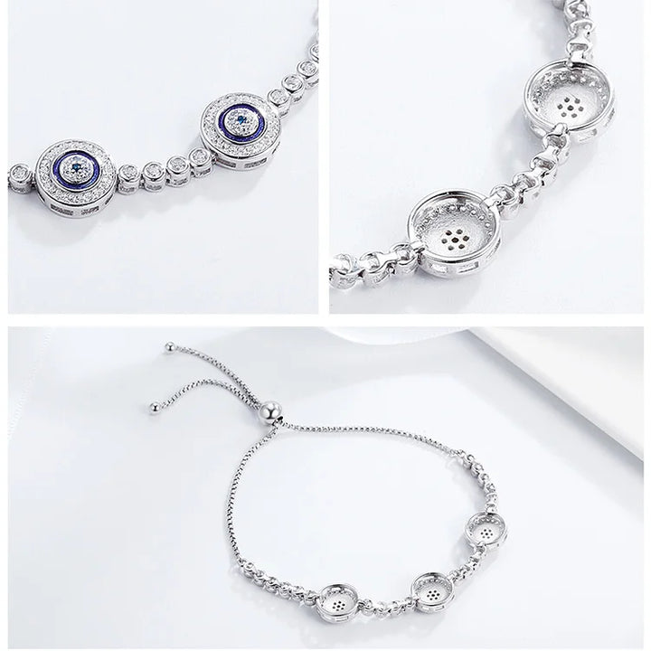 [STREET]Silver Luxury Round Blue Evil Eyes Clear Cubic Zircon Crystal
